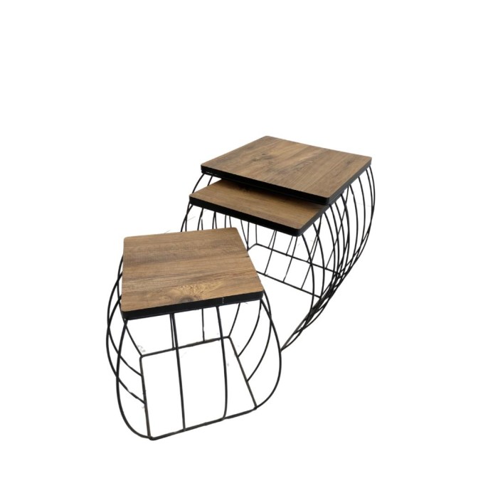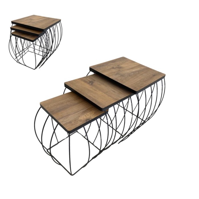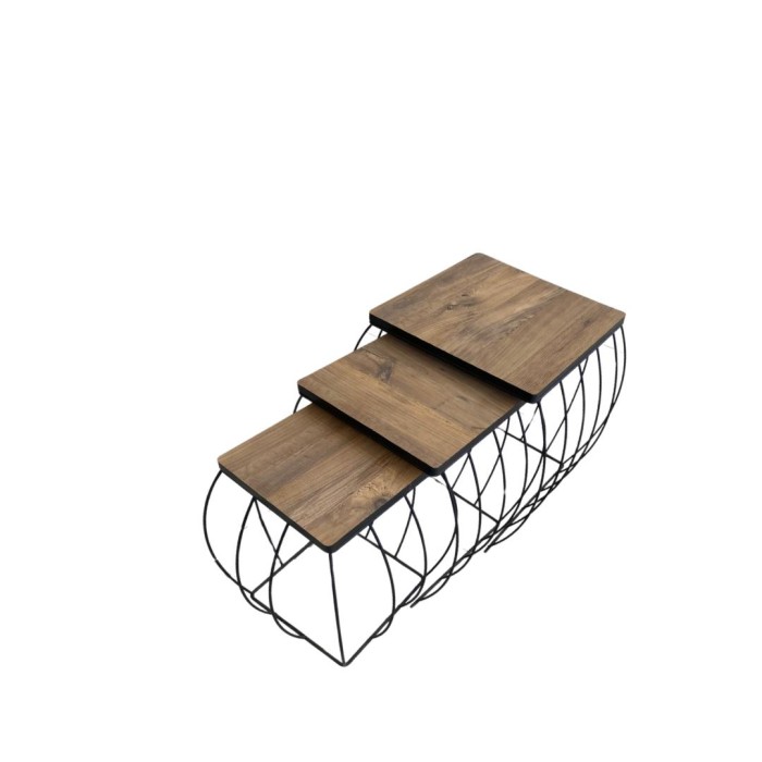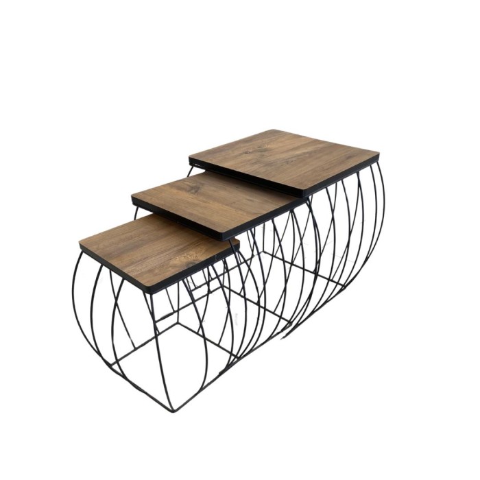 طقم طاولات خدمة (3 قطع) – ذوق وفخامة باللون الخشبي و الأسود