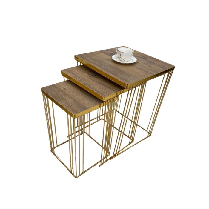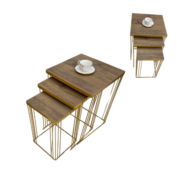 طقم طاولات خدمة (3 قطع) – ذوق وفخامة باللون الخشبي و الذهبي