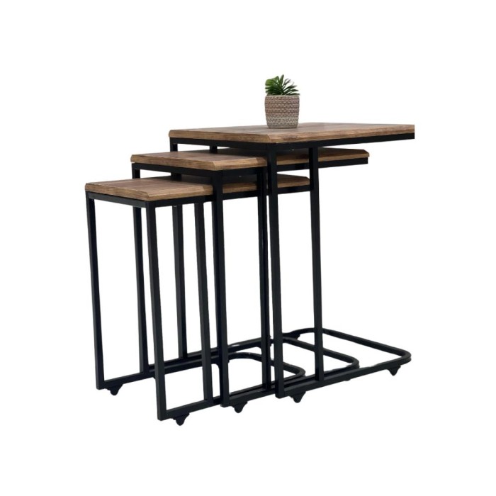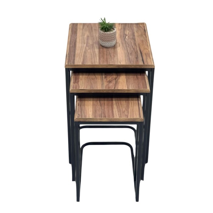 طقم طاولات خدمة (3 قطع) – اللون اسود سطح خشبي ذوق وفخامة