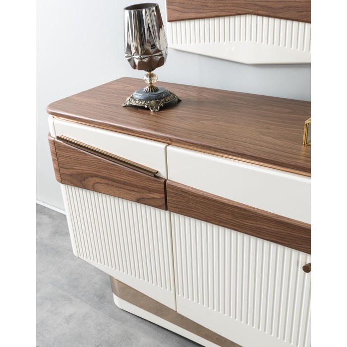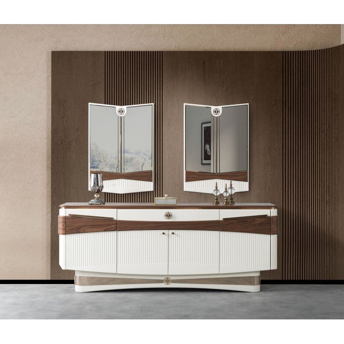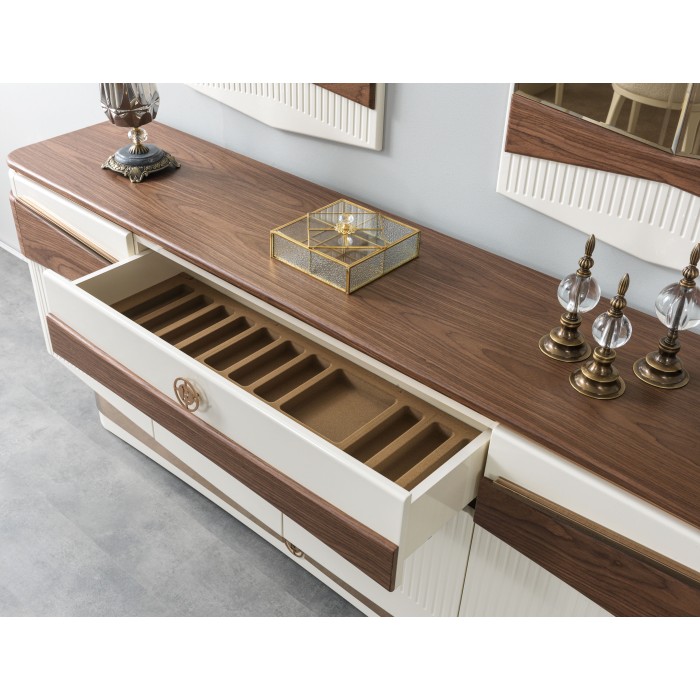 بوفية عملي مع مرآة ديكورية تضيف عمق وأناقة للمساحة